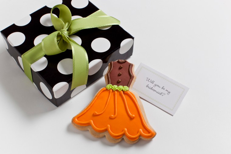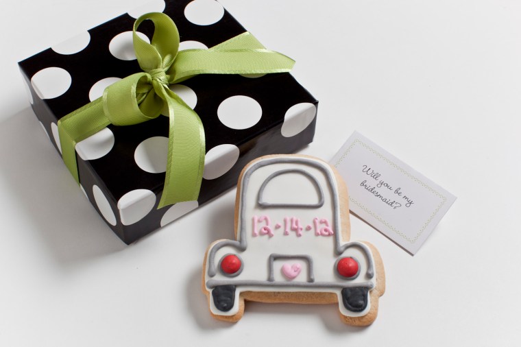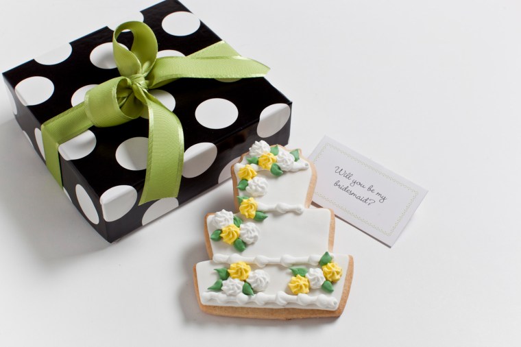 In addition to favors, they make these bridesmaids cookies, which are the sweetest way to ask your girls to stand by your side on your special day.