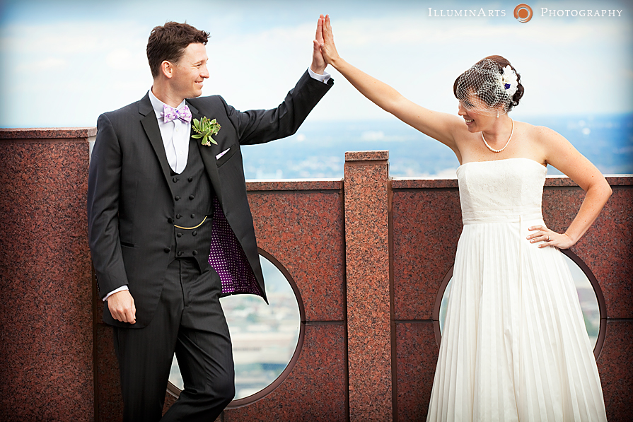 Venue: Top of the Tower | Photography: IlluminArts Photography | Videography: Tree of Life Films | Makeup: Face the Occasion | Officiant: Mirabai Galashan | Florals: Willow & Thistle | Rentals: Magnifique Décor | Ceremony Musicians: Penn Strings Duo | Band: Hometown Sweethearts | Hotel: Sonesta and Embassy Suites | Rehearsal Dinner: LaViola