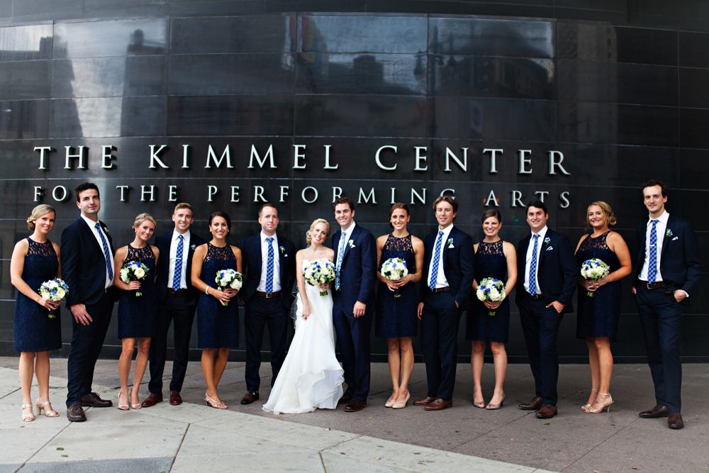 Ceremony Venue: St. John The Evangelist | Reception Venue: Kimmel Center | Caterer: Garces Catering | Photography: Grace Winter of Asya Photography | Videography: Wellspun Weddings | Stationery: Southern Calligraphy | Bride’s Dress: Badgley Mischka | Bridesmaids’ Dresses: J. Crew | Groom Suit: Boyd’s Philadelphia | Groomsmen Suits: J. Crew | Hair and Makeup: Duette Hair and Makeup | Florals: Papertini | Band: EBE Rio | Photo Booth: The Little Picture Photo Booth | Hotel: Hyatt at the Bellevue | Rehearsal Dinner: DiBruno Brothers