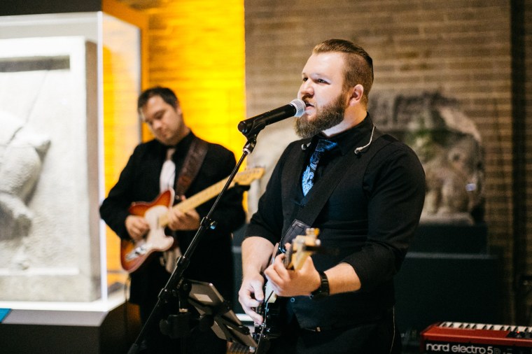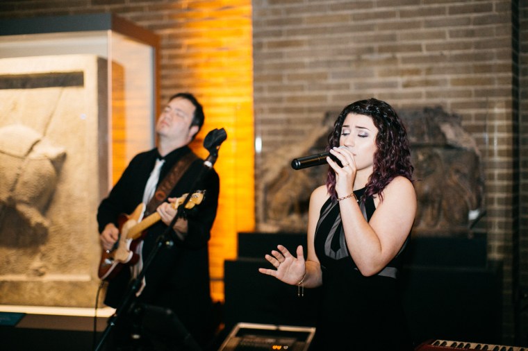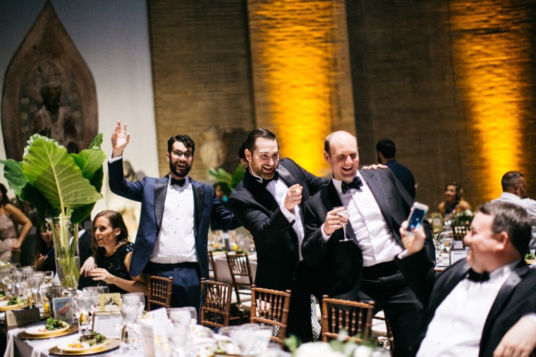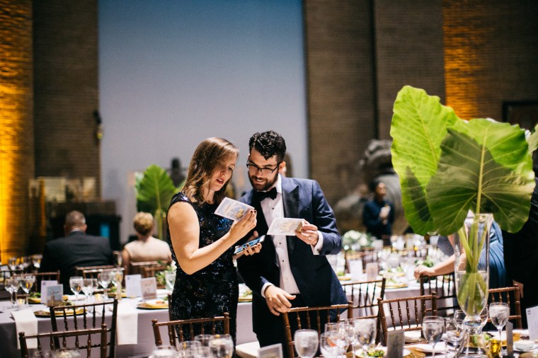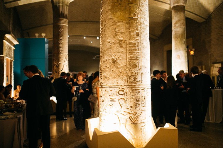 Venue: Penn Museum | Caterer: CxRA | Photography: Peach Plum Pear Photography | Bride’s Dress: Monique Lhuillier | Groom Tux: Alton Lane | Hair and Makeup: ONLO Beauty | Florals: Maura Rose Events | Furniture Rentals: Maggpie Vintage Rentals | Lighting: Visual Sound | Band: EBE Pop Philly | Cake: Nutmeg Cake Design | Photo Booth: SmileBooth | Transportation: Sterling Limousine and Transportation | Hotel: Inn at Penn