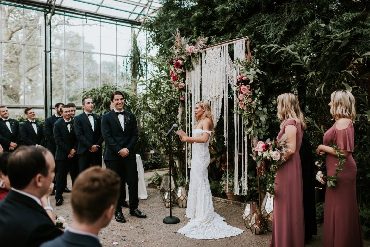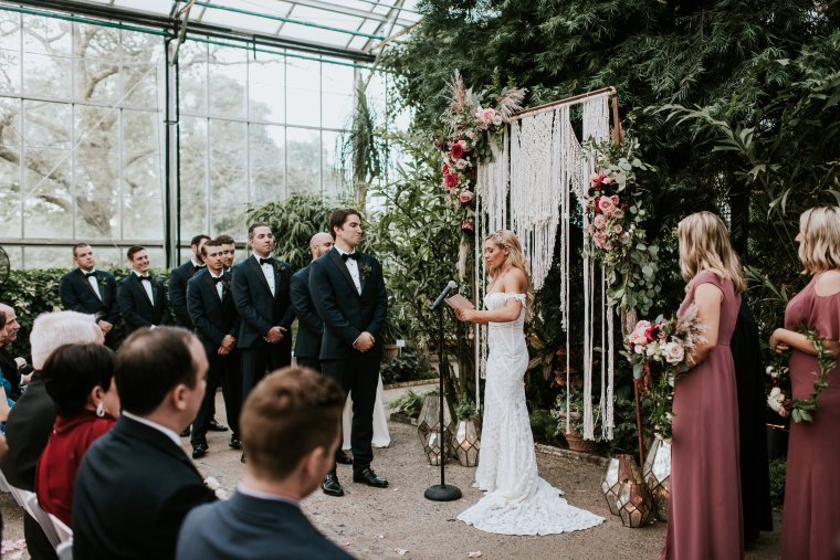 Venue: The Horticulture Center | Caterer: Constellation Culinary Group | Photography: M2 Photography | Videography: Stagger Films | Stationery: Minted | Bride’s Dress: Rue De Seine from Lovely Bride | Hair and Makeup: Evolve Studio | Officiant: Rev. Elizabeth McGlinn | Florals: Belovely | Furniture Rentals: Maggpie Vintage Rentals | Lighting: Eventions Productions | DJ: Synergetic Sound | Cake: Bredenbeck’s Bakery | Soft Pretzels: Philly Pretzel Factory | Photo Booth: Poser Booth | Tarot Reader: Queen of Wands Tarot | Transportation: Sterling Limousine | Hotels: Hotel Palomar and Sofitel Philadelphia | Rehearsal Dinner: Positano Coast