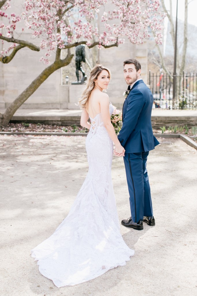 Venue: Pomme | Caterer: Peachtree Catering | Photography: Emily Wren Photography | Videography: Atomic Tangerine Films | Hair and Makeup: Aleksandra Ambrozy | Florals: Devon and Pinkett | Lighting: Synergetic Sound | Ceremony and Cocktail Musicians: World Duo Guitar | DJ: Lovesick Inc. | Cake: Nutmeg Cake Design | Transportation: Albert’s Limousine and Philly Trolley Works | Rehearsal Dinner: Barbuzzo | Brunch: Mission Taqueria