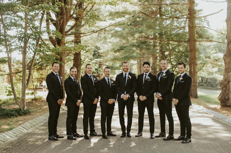 Venue: Ashford Estate | Caterer: Merri-Makers Caterers | Photography: India Earl Photography | Videography: Willow Tree Films | Stationery: The Papery | Bride’s Dress: Flora | Bridesmaids’ Dresses: Twobirds Bridesmaid | Groom’s Suit: Hugo Boss | Groomsmen Suits: Zara | Dogs’ Tuxes: Etsy | Makeup: Taryn Miller | Makeup: Monica Nguyen | Hair: Boho Hair Salon | Men’s Shaves: MarkDaniel Barbershop | Florals: Oleander Curated | Linens: La Tavola | Rentals: Party Rental Ltd. | Rentals: The Tabletop Company | Bar: Neptune Wine & Liquors | Lighting: Fenneli Design Group | Ceremony, Cocktail, and After Party Musicians: Pat and Sean Kelly | Band: EBE Milan 77 | Cake: BerryRich Bakery | After Party Cheesesteaks: Geno’s Steaks | Portrait Photo Booth: The Collective You | Transportation: Lacroix Tours | Valet and Transportation: Arrive in Style