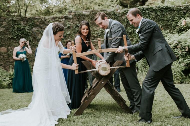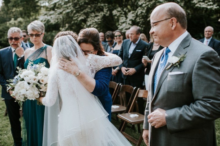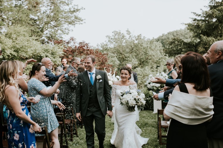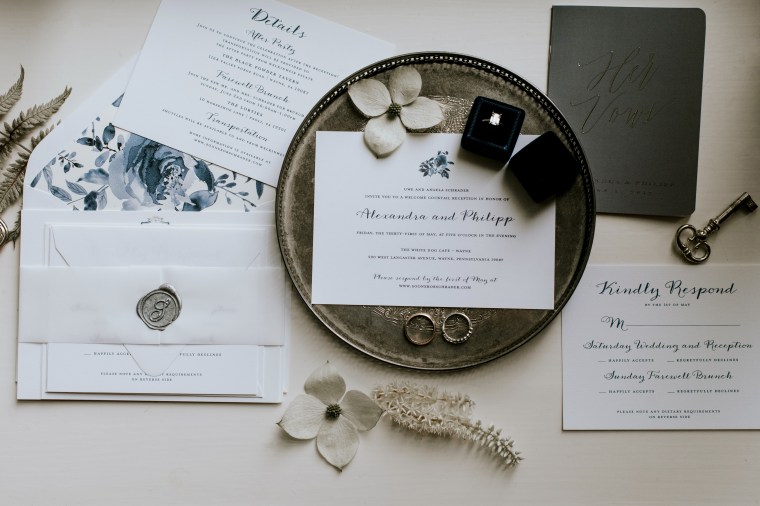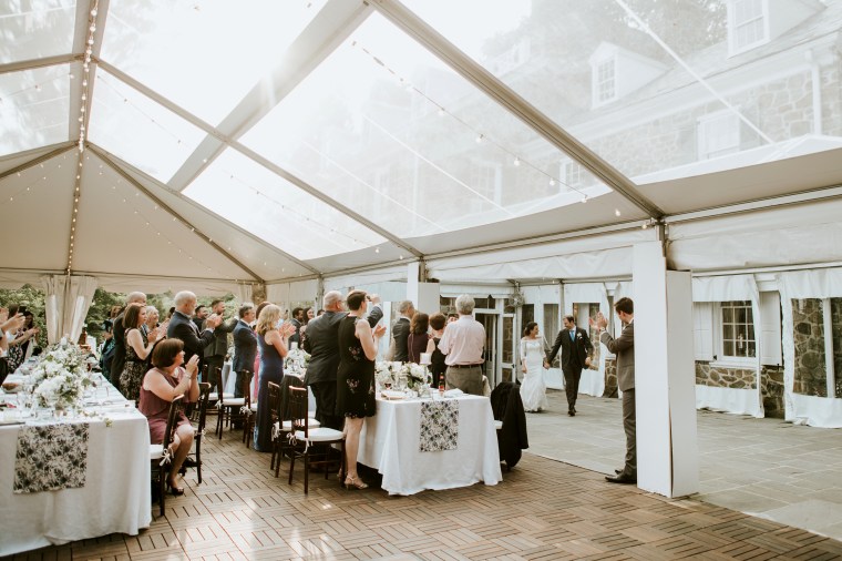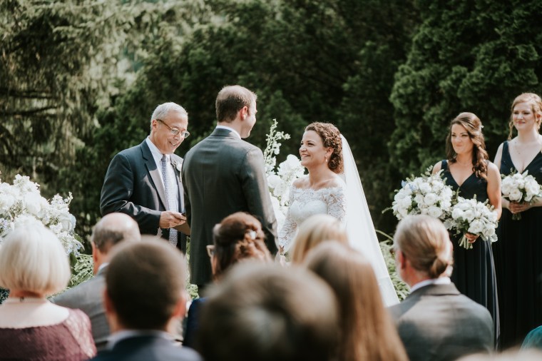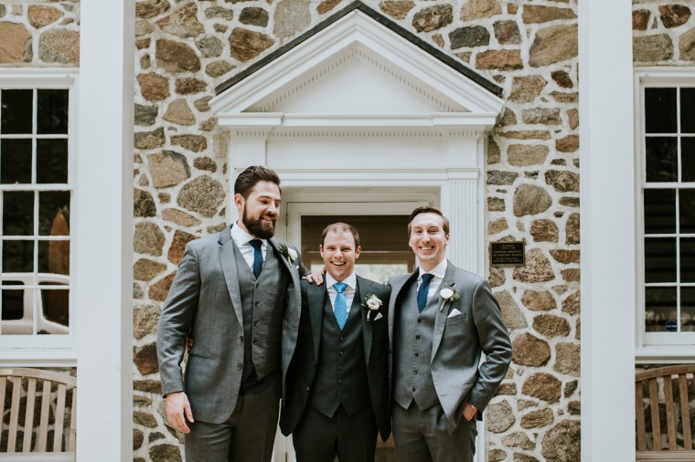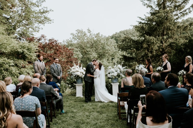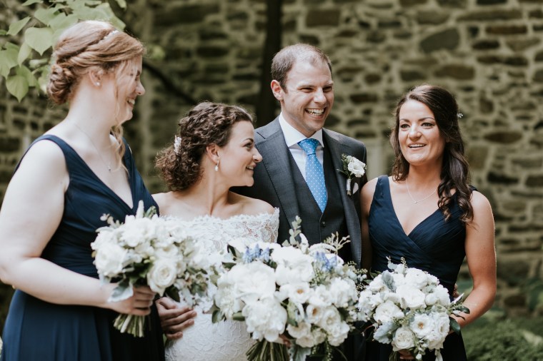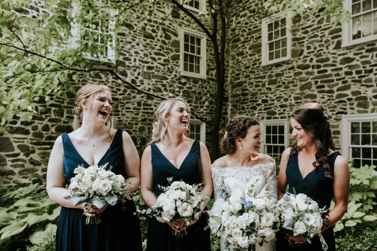 Venue: Welkinweir | Caterer: Jeffrey A. Miller Catering | Photography: M2 Photography | Videography: Stagger Films | Stationery: Rock Paper Scissors | Bride’s Dress: Dracane by Pronovias from Van Cleve | Bridesmaids’ Dresses: Watters | Groom Suit: | Groomsmen Suits: The Black Tux | Hair and Makeup: Nancy Caroline | Officiant: Rich Levy | Florals: Sebesta Design | Ceremony Musicians: Elegance String Quartet | Band: Jump Street | Cake: Jeffrey A. Miller Catering | Soft Pretzels: Jeffrey A. Miller Catering | Transportation: New Rhoads Transportation | Hotel: Embassy Suites Philadelphia-Valley Forge | Rehearsal Dinner: White Dog Café Wayne
