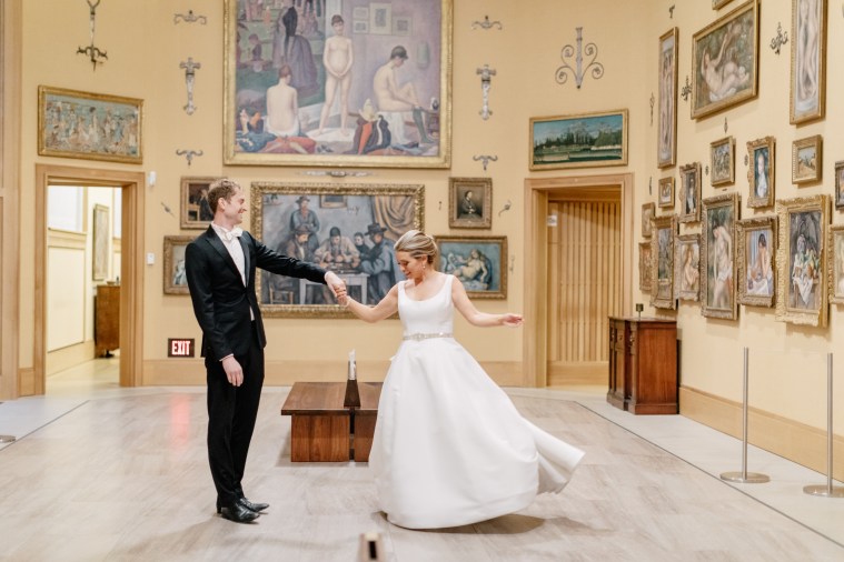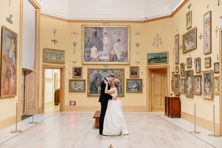 Ceremony Venue: Saint Patrick’s Church | Reception Venue: Barnes Foundation | Caterer: Constellation Culinary | Photography: Emily Wren Photography | Videography: Emily Wren Photography | Bride’s Dress: Sareh Nouri from Van Cleve Bridal | Hair and Makeup: Nancy Caroline Bridal Beauty | Post-Ceremony Entertainment: Avalon String Band | Florals: Carl Alan Floral Artistry | Band: CTO Midtown Express | Donut Tower: Federal Donuts | Transportation: Mid-Atlantic Limousine | Hotel: Acorn Club