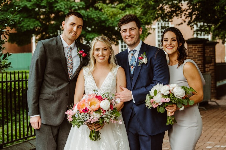 Venue: Front + Palmer | Caterer: Feast Your Eyes Catering | Photography: Love Shack Photo | Stationery: Chick Invitations | Bride’s Dress: Alyne by Rita Vinieris | Bride’s Shoes: Vans personalized by Skinz Customs | Maid of Honor Dress: Katie May | Hair and Makeup: Beautiful Brides Philly | Officiant: Maura Bernt of Journeys of the Heart | Florals: Papertini | Furniture Rentals: Barnes Farmhouse Tables | Lighting: Synergetic Sound | DJ: Lovesick Inc. | Cake: Feast Your Eyes Catering | Donuts: Federal Donuts | Photo Booth: Poser Booth | Transportation: Philadelphia Sightseeing Tours | Hotel: Hotel Monaco | Rehearsal Dinner: Fork