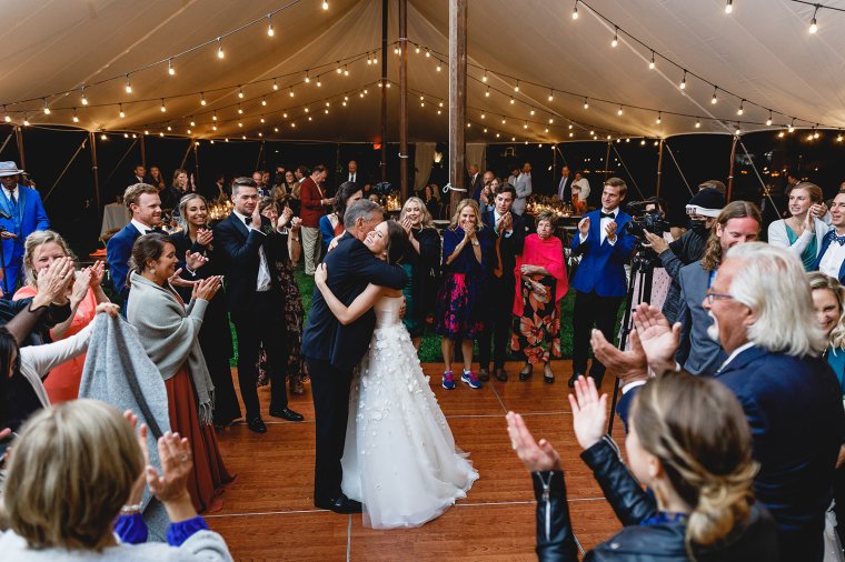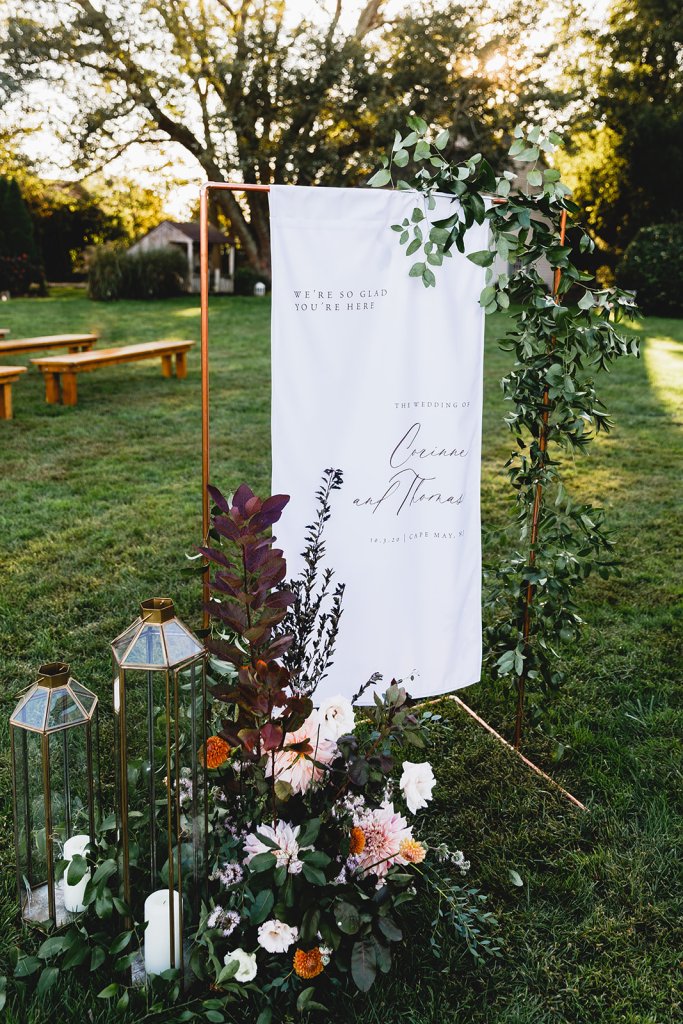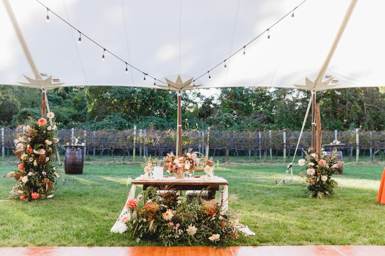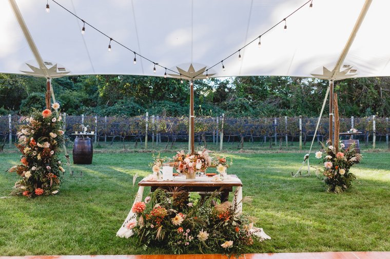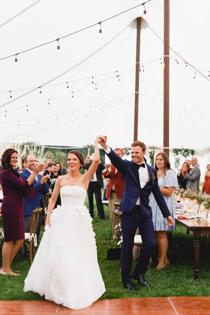 Venue: Isaac Smith Vineyard | Caterer: Washington Inn Catering | Photography: Bartlett Pair Photography | Videography: Well Spun Weddings | Day of Stationery and Signage: Papertree Studio | Bride’s Dress: Lela Rose from Mark Ingram Atelier | Bridesmaids’ Dresses: Jenny Yoo from Bella Bridesmaids | Groom and Groomsmen Suits: Nordstrom and The Black Tux | Hair and Makeup: Taffeta Hair and Makeup Design | Officiant: Rev. Elizabeth McGlinn of Positively Yours | Florals: Love ‘n Fresh Flowers | Bar: 13th Street Cocktails | Tent, Lighting, and Rentals: Ocean Tents | Band: Second Vision Entertainment | Cake: The Bake Works | Restroom Trailer: Port A Bowl Restroom Company | Transportation: Great American Trolley Company and Krapf Coaches | Hotels: Congress Hall, Montreal Beach Resort, Icona Cape May, and Ocean Club Hotel | Rehearsal Dinner: Beach Plum Farm