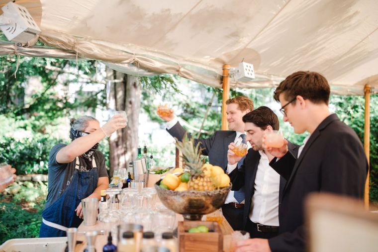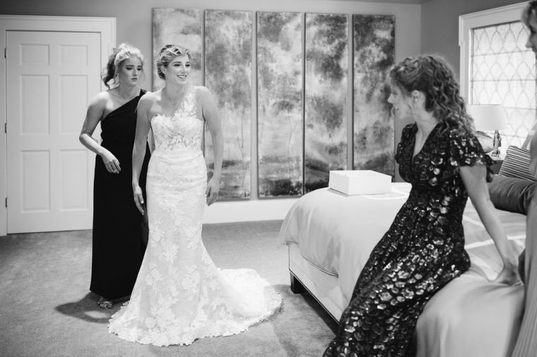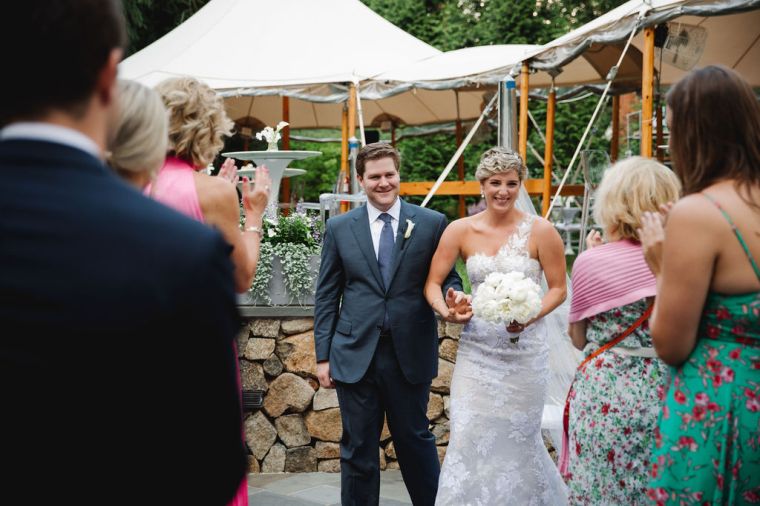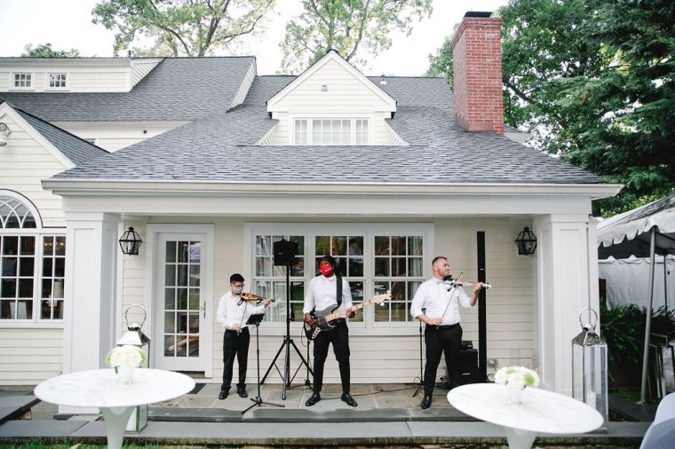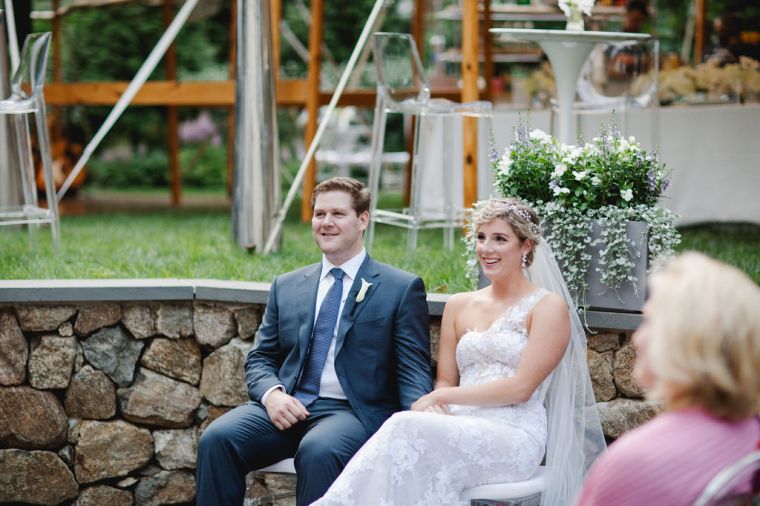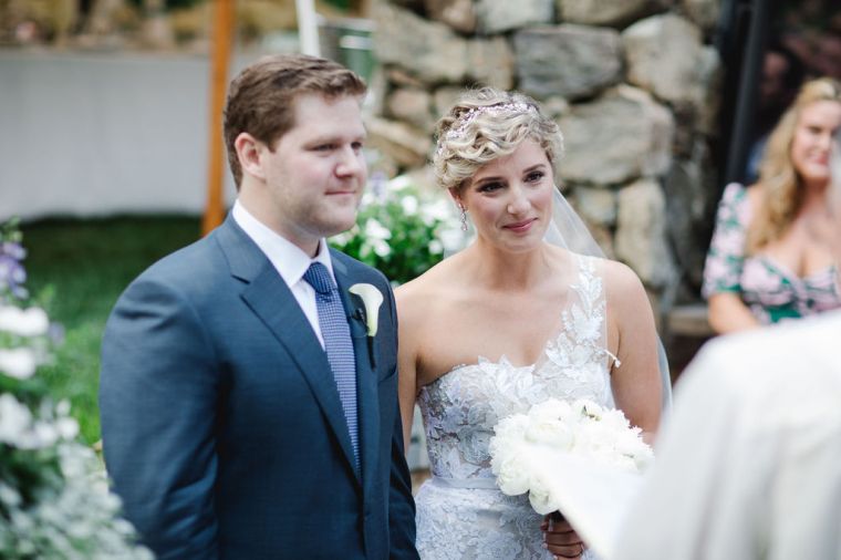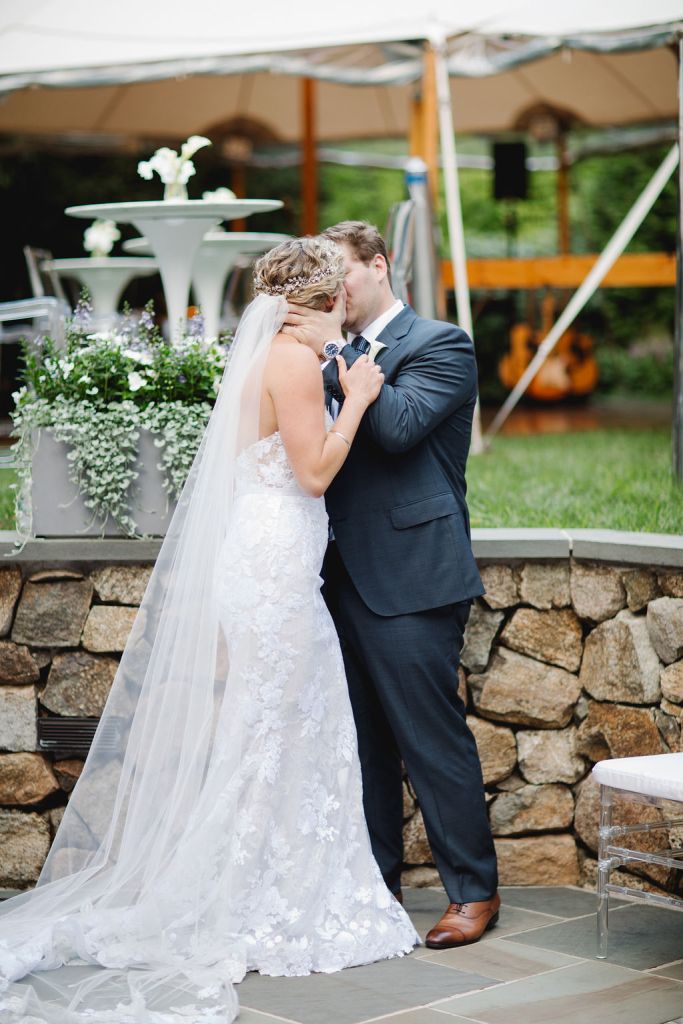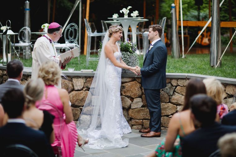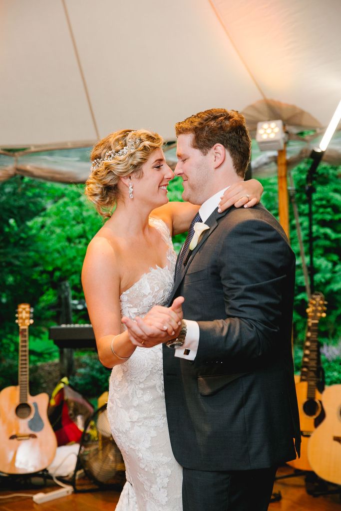 Venue: Private Residence | Caterer: Laurence Craig Catering | Bar: 13th Street Cocktails | Photography + Videography: Asya Photography | Stationery: Papertree Studio | Bride’s Dress: Mira Zwillinger from Elizabeth Johns | Bridesmaids’ Dresses: Amsale from Elizabeth Johns | Groom and Groomsmen Suits: David Donahue | Hair and Makeup: Nancy Caroline Beauty | Officiant: Bishop Checchio | Florals, Lighting, and Decor: Evantine Design | Tent: Sperry Tents | Rentals: Party Rental Ltd. | Ceremony + Cocktail Musicians: Philadelphia String Quartet | Band: Orchard Band | Cake: Sweet Sisters Cakes | Transportation: Top Town Limo | Hotel: Grand Summit Hotel