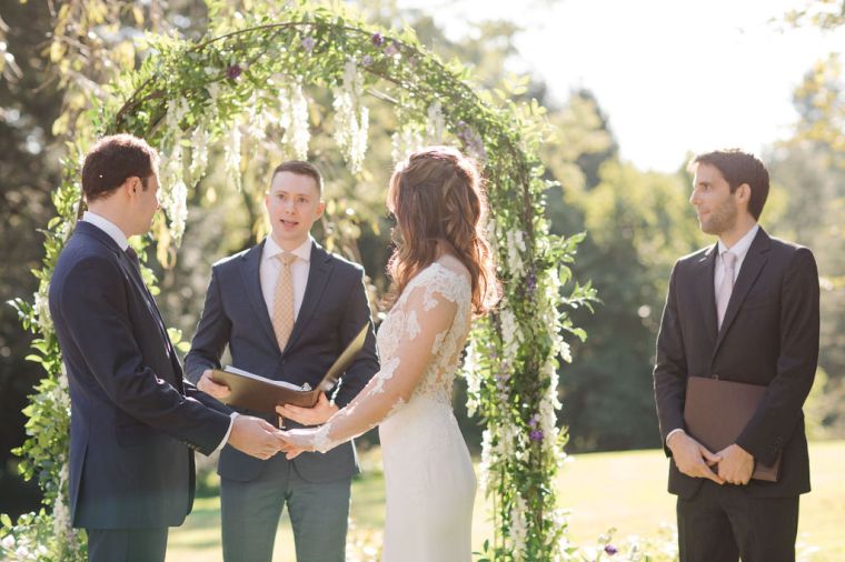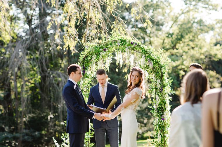 Venue: Private Residence | Caterer: Sage Catering | Photography: Asya Photography | Hair and Makeup: Aleksandra Ambrozy Makeup and Hair | Officiants: Bride and Groom’s Brothers | Florals: Kristina’s Wildflowers | Rentals: Party Rental Ltd. | Furniture Rentals: Maggpie Vintage Rentals | Lighting: Eventions Productions | Cake: Taste Catering
