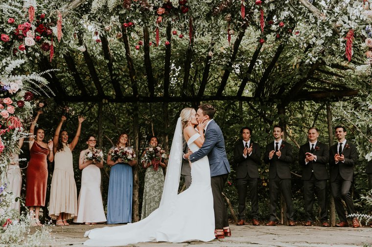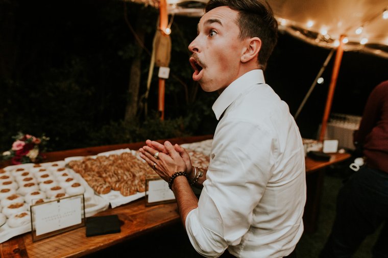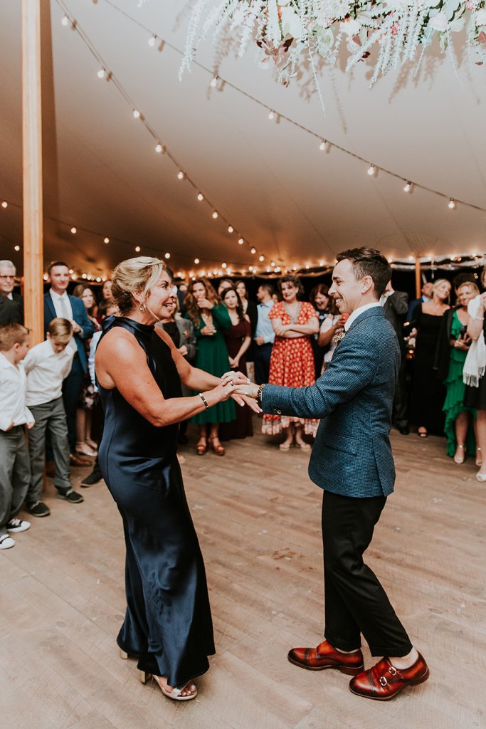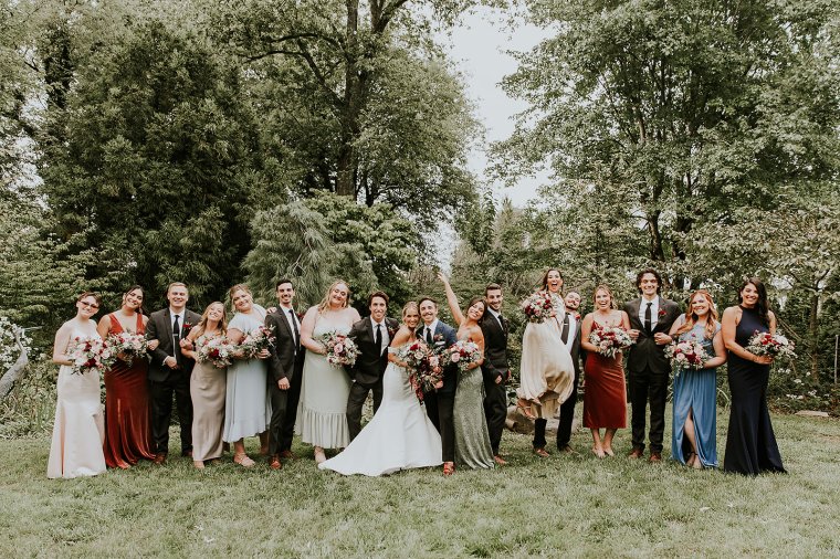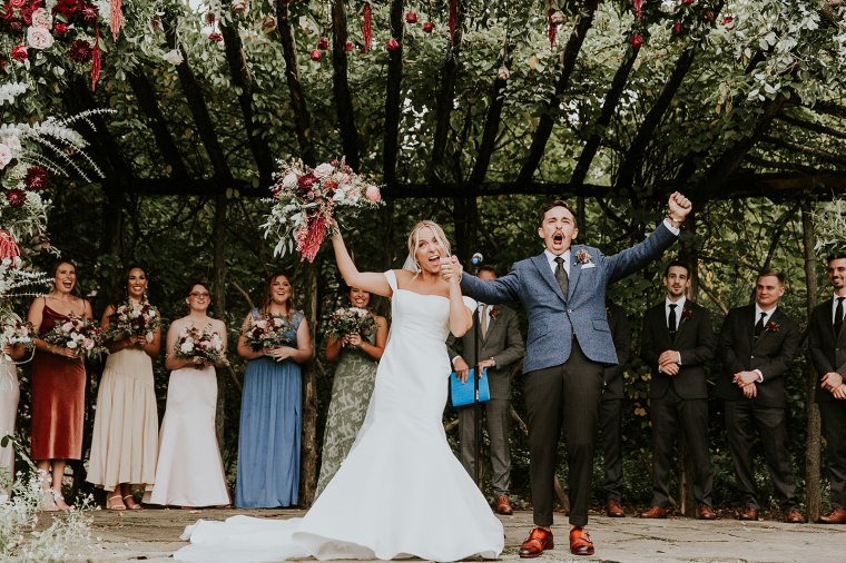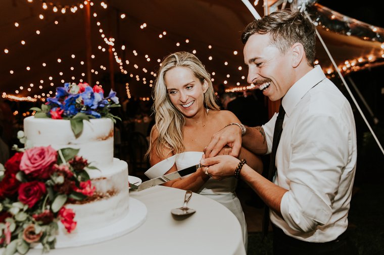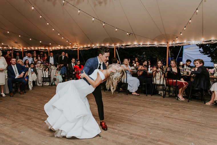 Venue: Paxson Hill Farm | Caterer: Sage Catering | Photography: Nicole of M2 Photography | Videography: Stagger Films | Stationery: Designed by Groom Max | Wedding Day Signs and Stationery: Oak + Sparrow | Bride’s Dress: Sareh Nouri | Bride’s Shoes: Dries Van Noten | Bride’s Jewelry: Puka Perri | Groom’s Suit/Tux: Sarto Collective | Hair and Makeup: Aleksandra Ambrozy | Officiant: Groom’s Uncle Ray Vandenberg | Florals: Sebesta Design | Tent and Lighting: Sperry Tents | Rentals and Linens: Party Rental Ltd. | Lounge and Reception Bar Rentals: Maggpie Rentals | Flatware, Glassware, and Cocktail Bar Rentals: White Glove Rentals | Band: ECE Modern Luxe | Photo Booth: Classic Photo Booth | Prosecco Trunk: The Roving Bar | Cake: Bredenbeck’s Bakery | Valet: Alber-Haff | Transportation: Paradise Transit and Ace Limo | Hotel: Ghost Light Inn and Logan Inn